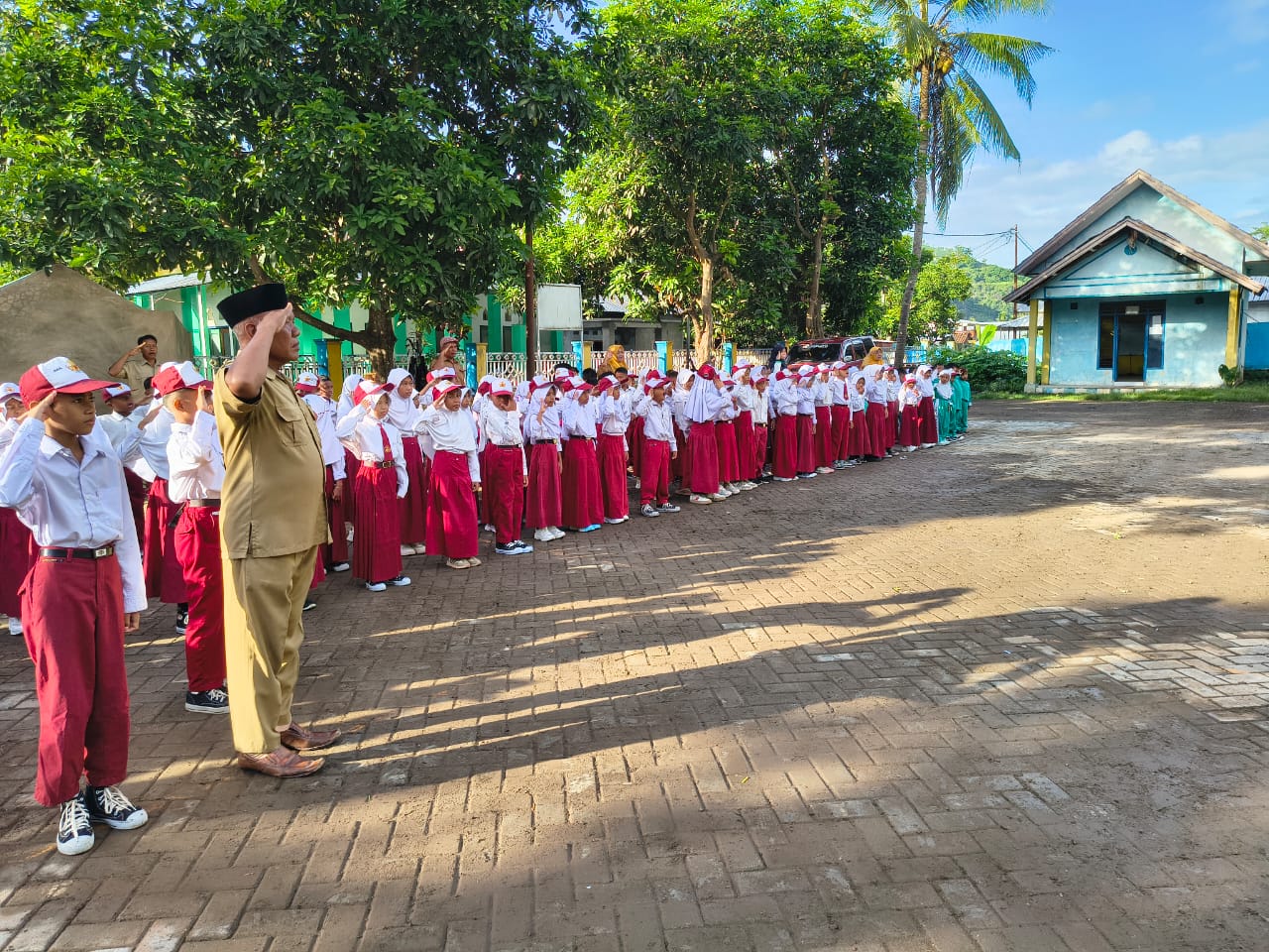 SDN 65 JATIBARU SEDANG GIAT MELAKSANAKAN KEGIATAN UPACARA DI HARI PERTAMA MASUK SEKOLAH PADA SEMESTER GENAP