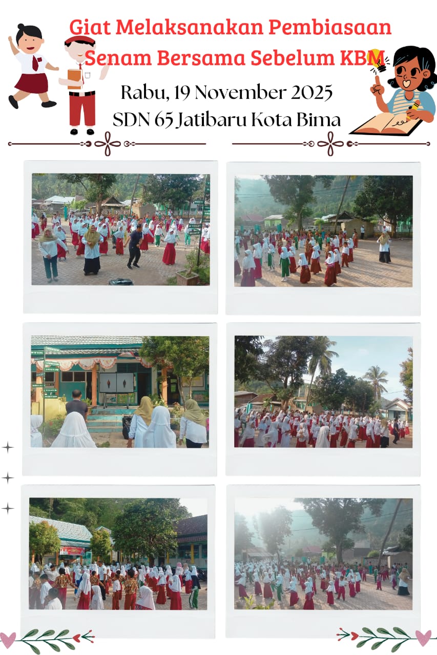 SDN 65 JATIBARU KOTA BIMA SEDANG GIAT MELAKSANAKAN SENAM PAGI BERSAMA PADA SETIAP HARI RABU SEBELUM KBM